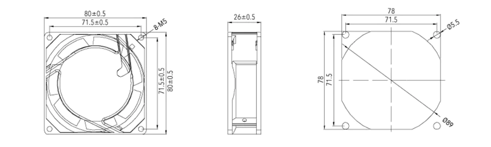 LKA08025-230 200/240 50/60 0.07/0.06 12/11 2500/2800 28/30.9 16.5/18.2 26/28