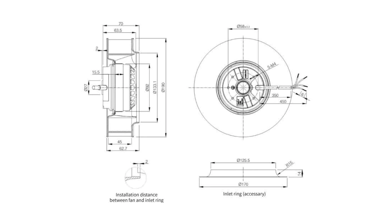 Motor structure: Outer rotor motor 92mm